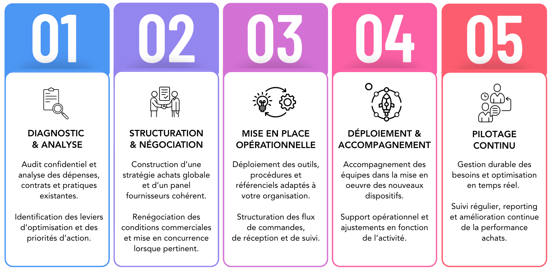 De l’analyse initiale à l’accompagnement opérationnel au quotidien, nous structurons et pilotons l’ensemble de vos approvisionnements.